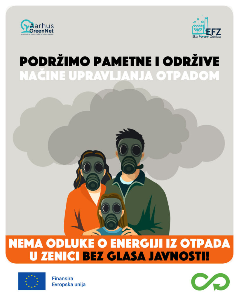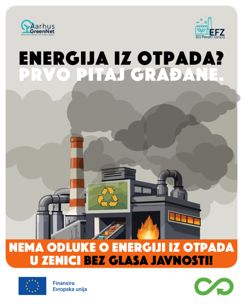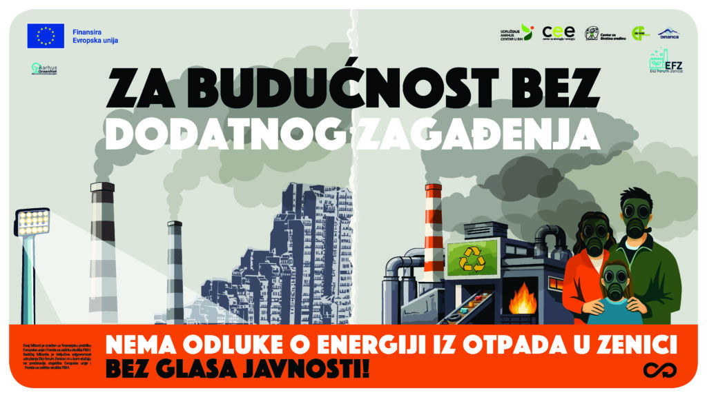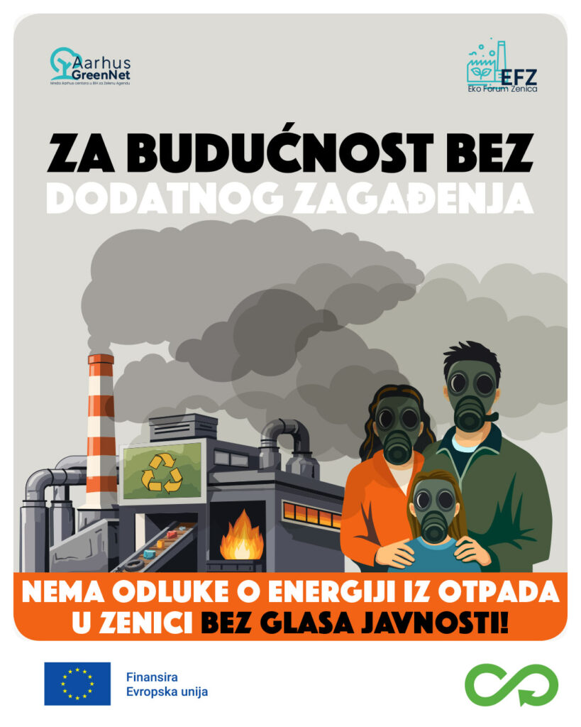 Informativno-zagovaračka kampanja pod nazivom „Za budućnost bez dodatnog zagađenja“ realizira se u okviru projekta Mreža Arhus centara za Zelenu agendu i zaštitu okoliša i ima za cilj da na jasan, argumentovan i građanima razumljiv način predstavi ključne činjenice u vezi sa planiranom izgradnjom energane na otpad (spalionice otpada) u Zenici, s posebnim fokusom na moguće okolišne, zdravstvene i društvene posljedice po lokalnu zajednicu.
