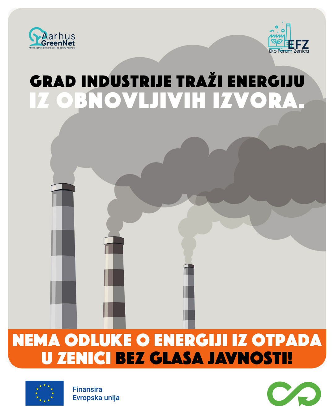 Informativno-zagovaračka kampanja pod nazivom „Za budućnost bez dodatnog zagađenja“ realizira se u okviru projekta Mreža Arhus centara za Zelenu agendu i zaštitu okoliša i ima za cilj da na jasan, argumentovan i građanima razumljiv način predstavi ključne činjenice u vezi sa planiranom izgradnjom energane na otpad (spalionice otpada) u Zenici, s posebnim fokusom na moguće okolišne, zdravstvene i društvene posljedice po lokalnu zajednicu.